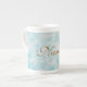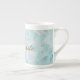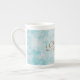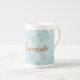 Stylish Namaste design china mug. Theme - spirituality "new age" holistic yoga reiki meditation mindful mindfulness elegant blue pastel
