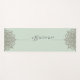 A modern attractive pastel blue green yoga mat with flowery mandala universe symbol, and a trendy script typeface namaste; for your yoga practice students or your everyday exercise routine! Modern stylish design.