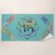 Namaste Aum Om & Lotus with Rainbow Vintage Border Personalised Beach Towel has a prismatic spiritual symbol indicating namaste in a purple, gold and green metallic-look that is made up of the Om or Aum symbol surrounded by Lotus petals. We have it it with turquoise aqua or light teal, but you can personalise it by changing it to any background colour you like. You can also change the images, and add your own text or images. See our other coordinating, customisable spiritual decor, accessories, clothing and cards and gifts in our store at zazzle.com/NextDimension. Namaste.