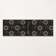 Double sided Namaste Sun Moon and Stars Boho Celestial Pattern Yoga Mat on a black background in a modern neutral colour palette of white, gold and black. Perfect for exercise, pilates, meditation, or your yoga practice. Makes an excellent gift for a yoga instructor. Magical witchy celestial design. Easily personalise with your own text or name. Font colour and style can be changed in the design tool.