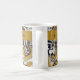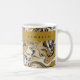The word “namaste” is written on this mug in black lettering three times in a horizontal orientation. Swirl and marble pattern with a touch of sophistication makes this elegant coffee mug an eye catching present that is sure to impress. Marble liquid swirl in colours of golden yellow, coffee tan, black and white.