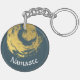 Namaste Yoga Studio Meditation Instructor Keychain Templates - Elegant Blue and Faux Gold Foil Brushstrokes ZEN Symbol.