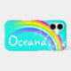 Help protect your child's iphone from knocks and kiddy accidents, with this pretty rainbow design girls tough iphone case. Personalise with your childs name up to 5 letters, perfect short names or nicknames. This example reads Oceana. Exclusively designed and illustrated by Sarah Trett.