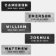 Waterproof property labels with customisable name and telephone number on light to dark grey, rough cocrete backgrounds. Great for labelling your children's belongings