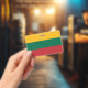 Show off your national pride and identity with this striking name badge featuring the flag of Lithuania!