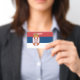 Add a bold and patriotic flair to your professional look with this name badge featuring the flag of Serbia!