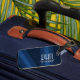 A PhD graduation luggage tag with a blue and white colour scheme. Simply customise the name, add this luggage tag to your cart, and gift it to the graduate.