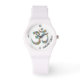Best price! A sporty white silicone strap and case with a stylish botanical print Om symbol and personalisation. Easily personalise using the Template provided. A clear and black strap watch are also available. The print on these watches is excellent.