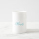 Name Calligraphy Script Plain Simple White Blue Bone China Mug