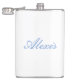 Name Calligraphy Script Plain Simple White Blue Hip Flask