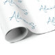 Name Calligraphy Script Plain Simple White Blue Wrapping Paper