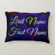 Create a humourous gift for yourself or for a friend with this name change geometric accent pillow.  This product features front side, first and last name text customisation.  On the back side of the pillow, switch the first letters of your front and last names to create an interesting new name that you can show off to friends.  Enjoy a colourful gift that features a red blue colour geometric triangular theme.  Purchase the throw and round pillows to complete the set.