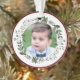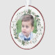 Name Child's Photo Burgundy Christmas Wreath Ornament