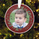 Name Child's Photo Burgundy Christmas Wreath Ornament