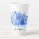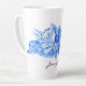 An impressive composition of Cobalt Blue watercolor tropical flowers and leaves, large protea flowers and a frangipani decorate this 15oz classic latte mug. Large capacity for hot or cold beverages. Easily change name, to text, or remove using the Template provided. See "About This Product" at side for more information and care.