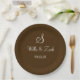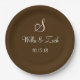 Name Date Monogram Autumn Fall Wedding Brown White Paper Plate