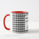 A classic black and white buffalo check pattern with black handwriting script text. Perfect gift for anyone on your holiday list. This is an 11oz combo colour beverage mug, choose from 10 colours for inside and handle. Also available in large 15oz. with 5 colours and several other styles. Easily change text to make it yours using the Template provided. See "About This Product" at side for more information.