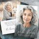 Elegant, white or custom colour bereavement sympathy thank you card featuring your custom photo with the name in a handwritten style script and customisable text " forever in our hearts" below. Additional photo and custom thank you message on the back.