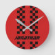 Name Fully Custom Colors Double Checkered Stripes Round Clock