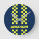 Name Fully Custom Colors Double Checkered Stripes Round Clock