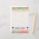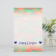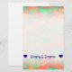 This stationery design features an abstract splotchy cloudy pattern that could be said to resemble the appearance of some watercolor paintings. It features various shades of colors like green, red and orange. It also features a customizable name near the bottom, between two heart shapes. [~Z0000113]