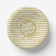 Name Happy Birthday Yellow Simple Stripes Pattern Paper Plate