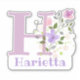 Personalise any item with a Name and Initial with Floral Design Cut-Out Sticker. Example name is Harietta.