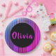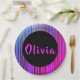 Name Hot Pink Purple Black Gold Birthday Party Paper Plate
