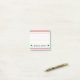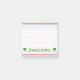 This notes design features stripes with colours inspired by the colours of an ice hockey arena rink. The blue is inspired by the rink's two blue lines, and the red by the centre red line. The yellow is inspired by the yellow kick plate at the bottom of the boards. The white/grey colours are inspired by the colours of the boards and the ice. It also features a custom name near the bottom in green coloured text, between two heart shapes. [~Z0000122]