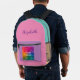 Custom Modern Elegant Cute Simple Trendy Template Upload Image Photo Picture Or Business Logo Add Calligraphy Script Name Or Text Pink, Teal Blue Green, Light Purple, Yellow Colourful Accessories / Bags & Wallets / Backpack.