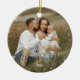 Minimalist Christmas ornament with your last name in a charming blue script as an overlay atop a photo covering the whole ornament.