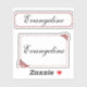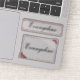 Personalize your items with stickers that display your name in cursive script surrounded with two different borders. Both borders are burgundy in color with one featuring a drawing of rose clusters in two corners.