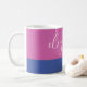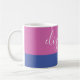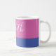 This modern and colourful mug features your name in trendy handwritten script, and a modern colour block design in purplish pink and blue.