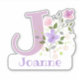Personalise any item with a Name and Initial with Floral Design Cut-Out Sticker. Example name is Joanne.