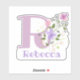 Personalise any item with a Name and Initial with Floral Design Cut-Out Sticker. Example name is Rebecca.