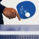 A simple and modern design on a blue ping-pong paddle to personalise with your own name and initials