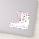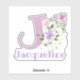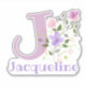 Personalise any item with a Name and Initial with Floral Design Cut-Out Sticker. Example name is Jacqueline.