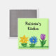 Pretty garden flowers in golden yellow sunflower, blue yellow flower, purple tulip in bloom in the green grass. Patricia's Kitchen is written in black script against a refreshing pretty green background. Personalize with your Name. Click Personalize to increase image size, or edit font style size, or change background colors. Original Artwork by TamiraZDesigns.