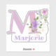 Personalise any item with a Name and Initial with Floral Design Cut-Out Sticker. Example name is Marjorie.