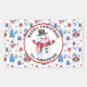 Classic retro snowman in a top hat in the centre with red, gold and blue background pattern decorate these holiday rectangle stickers. Printed in vibrant full colour on glossy paper; matte is also available for an upcharge. Easily change text using the Template provided. Four 4.5"x2.7" rectangle or oval stickers per sheet. See "About This Product" at side for more information.