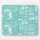 This mouse pad is mint green and white with a text word cloud can be personalised with a name or word of your choice.