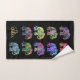 These beautiful personalized towel is decorated with beautifully colored, ornamental elephants which vary in vibrancy and hue, and shine against a trendy black background. An original design available exclusively at ©EleSil online store. All rights reserved.