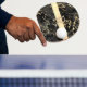 Name & Monogram, Gold Bar, Black & Gold Marble Ping Pong Paddle