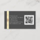 An elegant design of white and gold marble with brushed gold band. Personalise your name, monogram, occupation, QR code and contact info on back. Back is dark grey with white text and brushed gold band.