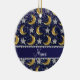 Name navy blue glitter gold moons silver stars ceramic tree decoration