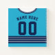 This design is an ice hockey / lacrosse style jersey in baby blue with navy and white stripes and trim, the background 'skin' colour can be changed, just click CUSTOMIZE.