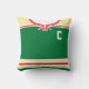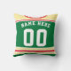 Easy to edit ice hockey or lacrosse custom jersey design throw pillow. The colours of this design are green, red and cream, the white parts can be changed, just click 'CUSTOMIZE' to choose a different colour. Just use the boxes to the right of the image to insert your own choice of name and number. You can also add either a captains 'C' or alternate 'A' or the sweater number on the front too.