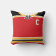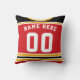 Easy to edit ice hockey or lacrosse custom jersey design throw pillow. Prominent colours of this jersey are red and black with gold stripes, the white parts can be changed, just click 'CUSTOMIZE' to choose a different colour. Just use the boxes to the right of the image to insert your own choice of name and number. You can also add either a captains 'C' or alternate 'A' or the sweater number on the front too.