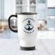 Taza de Cafe's design with the "Welcome Aboard" phrase features a simple, elegant, coastal white and marine blue design with anchor logo. Customize the text of the personalized boat with the name of your ship along with its location, city and state. Gift Ideal for boat owners with nautical theme. Don't think about it and Acquire this Nice Taza Nautica design
