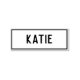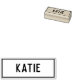 Now you can stamp your name on the items you want to show you own! Use it over and over again. Personalise with your choice of name. Your name on a rubber stamp. The name on this rubber stamp is Katie.